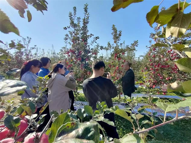 百畝連片的蘋(píng)果樹(shù)郁郁蔥蔥,紅彤彤的蘋(píng)果俏耀枝頭,空氣中彌漫著沁人心脾的果香……在寶雞市鳳翔區(qū)范家寨鎮(zhèn)綠寶果業(yè)有限責(zé)任公司,采訪團(tuán)一路走一路看,詳細(xì)聆聽(tīng)負(fù)責(zé)人曹銘元津津樂(lè)道講述蘋(píng)果種植的故事,在一幅幅展板、一件件展品前探尋“鳳翔蘋(píng)果 香飄九州”的密碼!