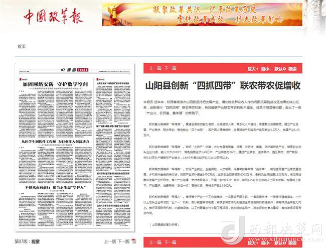 近年來,山陽縣堅持把增加脫貧群眾收入作為鞏固銜接工作的核心任務(wù),聚焦幫扶產(chǎn)業(yè)聯(lián)農(nóng)帶農(nóng)方式單一、帶動效果不夠明顯等問題,創(chuàng)新推行“四抓四帶”聯(lián)農(nóng)帶農(nóng)機制,并作為今年“一縣區(qū)一特色”改革事項壓茬推進,以機制創(chuàng)新促進群眾持續(xù)增收,守住了防返貧底線,脫貧質(zhì)量和成色進一步提升。今年該典型案例被《陜西鄉(xiāng)村振興簡報》刊發(fā),并代表陜西省在全國交流經(jīng)驗,11月6日被國家級媒體《中國改革報》刊發(fā)。