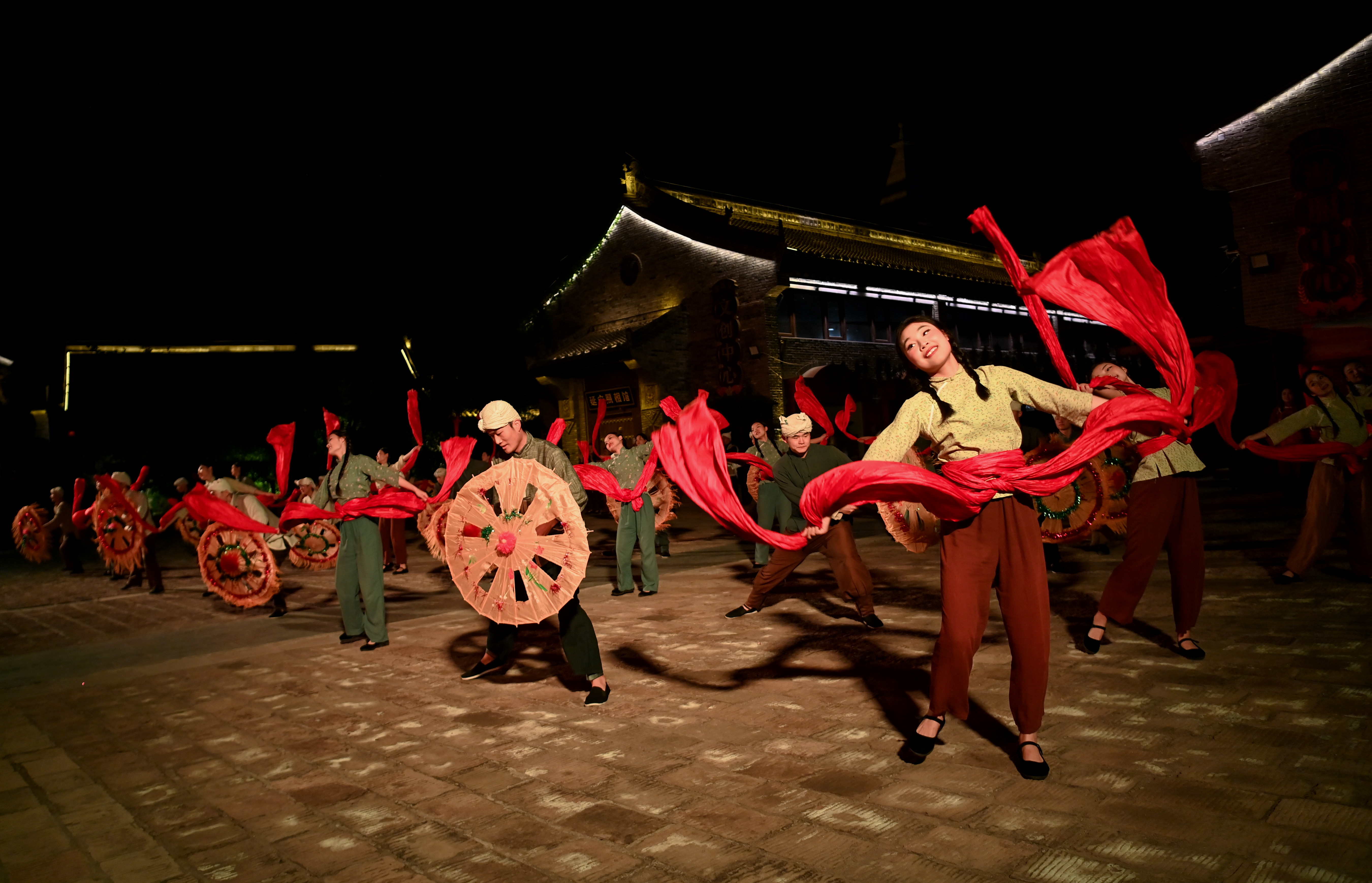 8月31日,演員在陜西延安的金延安文化旅游產(chǎn)業(yè)園區(qū)表演紅色歌舞劇《延安十三年》。新華社記者 鄒競(jìng)一 攝