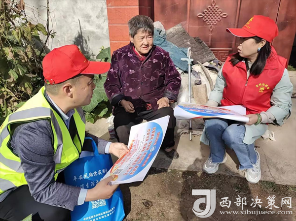 “大娘,這是咱們印制的發(fā)放宣傳彩頁,向過往群眾詳細(xì)講解平安建設(shè)的意義、“九率一度”的內(nèi)容以及如何參與“平安建設(shè)”活動等方面的知識,努力營造人人知曉、人人參與、人人共享的濃厚氛圍。同時,還結(jié)合相關(guān)實際案例向現(xiàn)場群眾講解掃黑除惡、防范網(wǎng)絡(luò)電信詐騙等相關(guān)知識,鼓勵動員廣大群眾積極參與平安建設(shè)。如果還有其他問題,可以直接咨詢我們”。新時代文明實踐站的志愿者趙建軍正在面對面地向群眾宣傳平安建設(shè)政策。