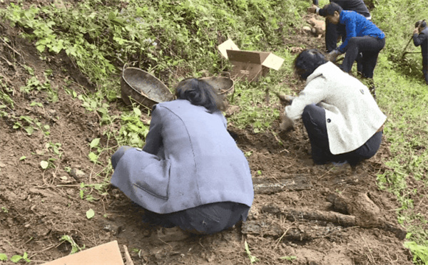 在略陽(yáng)縣郭鎮(zhèn),群眾手拿鋤頭彎著腰、弓著背正在熟練地翻開泥土進(jìn)行采挖。一個(gè)個(gè)碩大飽滿的天麻呈現(xiàn)在我們眼前。