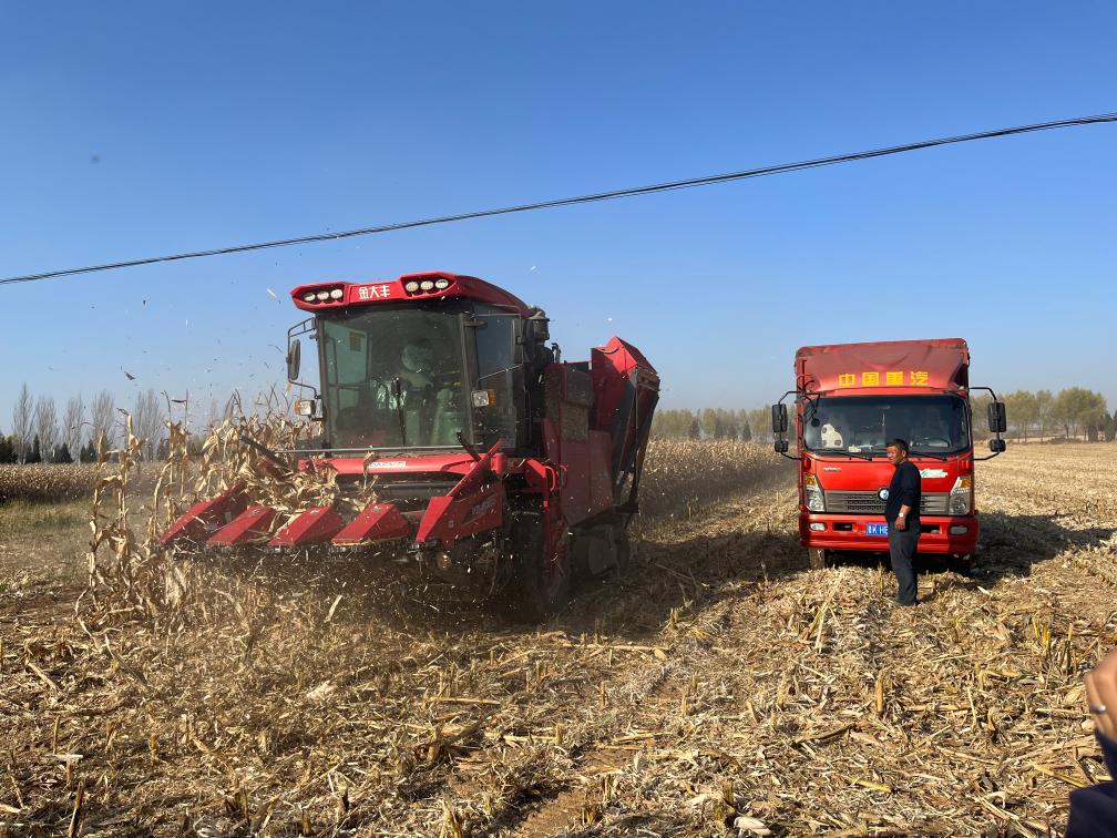 壽陽縣景尚鄉(xiāng)正在進(jìn)行玉米機(jī)收。新華社記者 王勁玉 攝