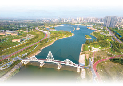 陜西省西咸新區(qū)灃渭生態(tài)景觀區(qū),各類“海綿設(shè)施”既防范洪澇,又留住水資源。席榮軒攝(人民視覺)