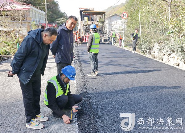 在施工現(xiàn)場,施工單位技術(shù)員不斷變換位置,操作儀器,認(rèn)真測量攤鋪虛系數(shù)。監(jiān)理人員拿著測溫儀,對到場的瀝青混凝土料檢測溫度。“因?yàn)槭嵌臼┕ぃF(xiàn)場降溫比較快,因此,要求攤鋪前溫度不低于150度,初軋溫度不低于140度。”現(xiàn)場監(jiān)理說。料溫達(dá)不達(dá)標(biāo),包抓該項(xiàng)目的縣交通運(yùn)輸局負(fù)責(zé)人隨機(jī)抽查,屢試不爽。
