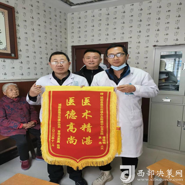 西部決策網(wǎng)訊 初冬的早上,家住城固縣蓮花街道的曾鐸夫婦專程來到衛(wèi)生院,懷著感激的心情,特意送上一面錦旗,感謝譚曉明和袁杰兩位大夫為他們解除了多年的病痛折磨。“感謝譚大夫、袁大夫給我治病,你們不僅醫(yī)術(shù)高超,而且醫(yī)德高尚,對我們的服務(wù)也非常好,讓我們在家門口就享受到了大醫(yī)院的服務(wù),我們非常滿意。今天送上錦旗,以表感謝”。“身為一名醫(yī)生,這是我們應(yīng)該做的,也是我們院領(lǐng)導(dǎo)一直以來要求我們這樣做的,同時也是咱們共同配合的結(jié)果。”譚大夫回答說。