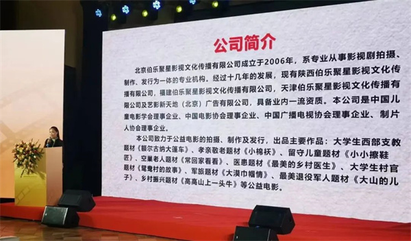 伯樂聚星影視董事長,該片總出品人、總制片人高秀云受邀出席推介會,并登臺向領(lǐng)導(dǎo)及眾來賓隆重介紹電影《唱支山歌給黨聽》。