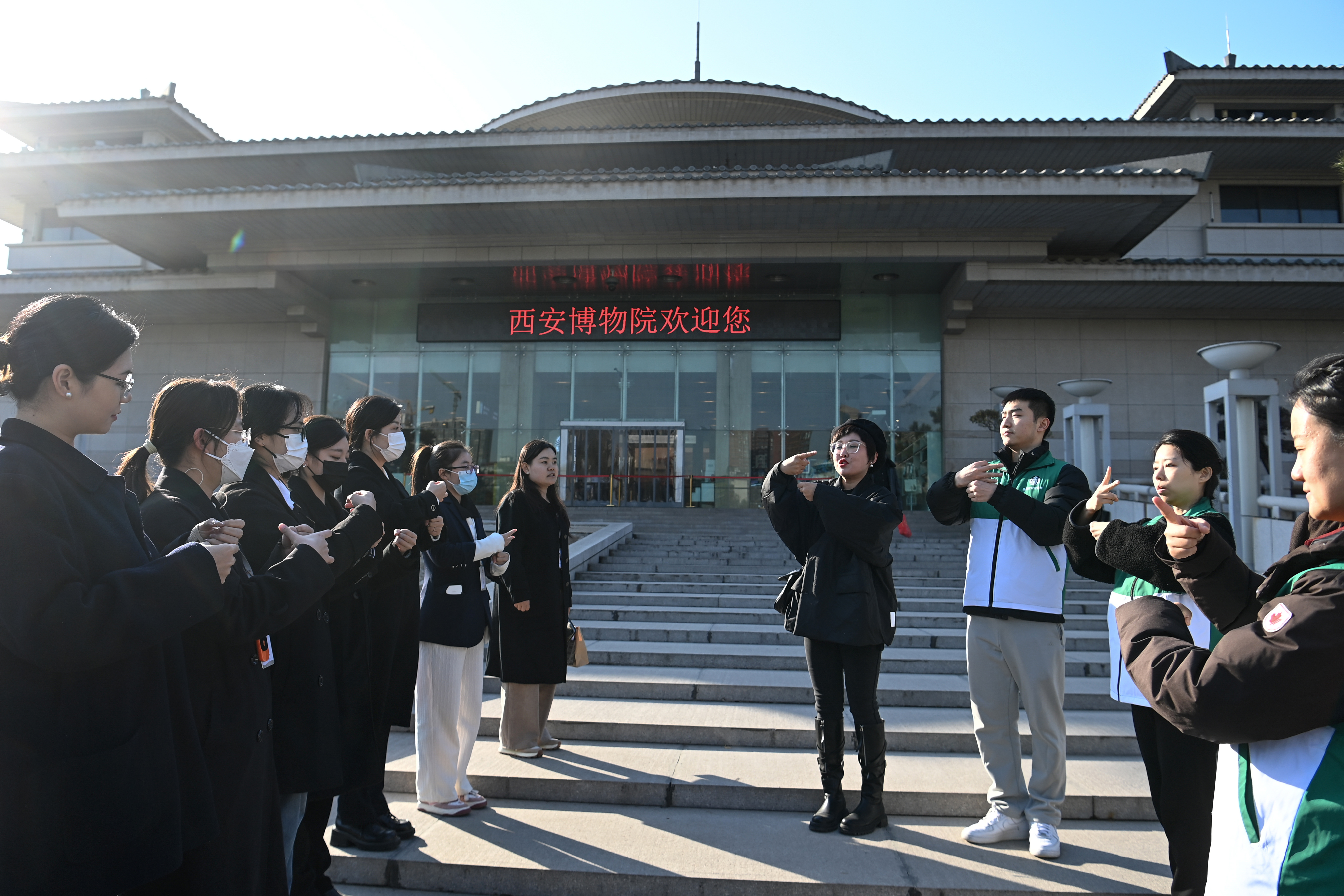 在12月3日國際殘疾人日到來前夕,西安博物院迎來了一群聽障咖啡師。他們并非參觀,而是來給這里的講解員、教育專員傳授手語技能。走過一件件國寶珍品,館員每每想到重要的手語表達(dá),都會向身邊的咖啡師請教,還不斷比劃練習(xí),力求更加精準(zhǔn)。