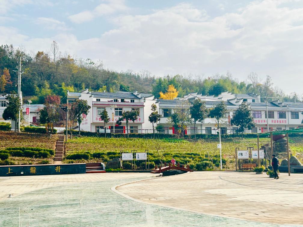 走進(jìn)竹山縣寶豐鎮(zhèn)龍井村,白墻黑瓦的村舍掩映在青山綠水間,山坡上茶樹整齊排開,一座座溫室大棚里種有各類蔬菜瓜果,農(nóng)家樂和民宿游客不斷,呈現(xiàn)出美麗鄉(xiāng)村的幸福圖景。