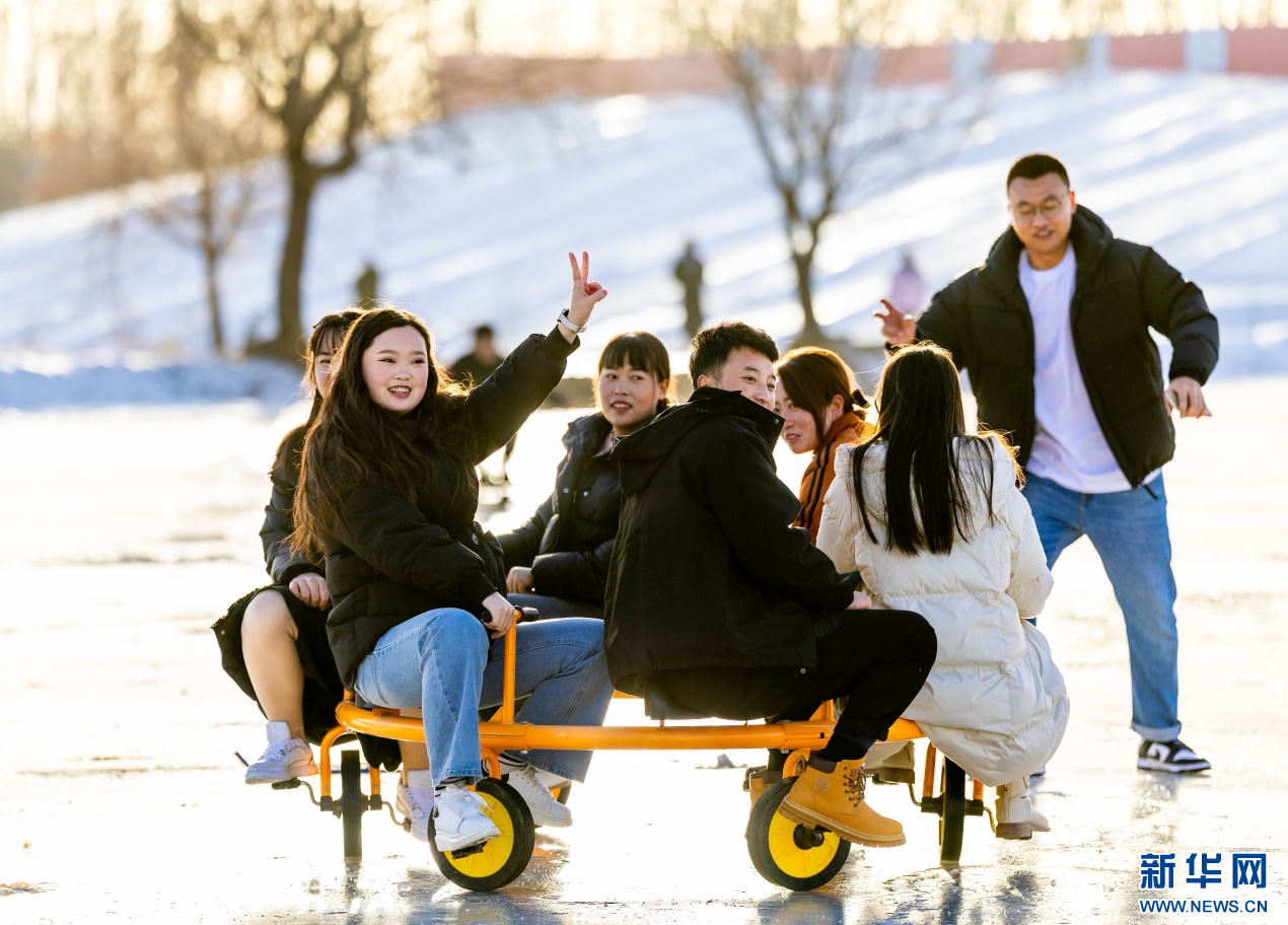 12月7日,游客在呼和浩特市玉泉區(qū)大庫(kù)倫村“冰雪大世界”內(nèi)體驗(yàn)多人冰車(chē)。新華網(wǎng)發(fā)(丁根厚 攝)