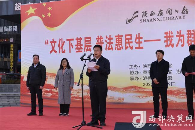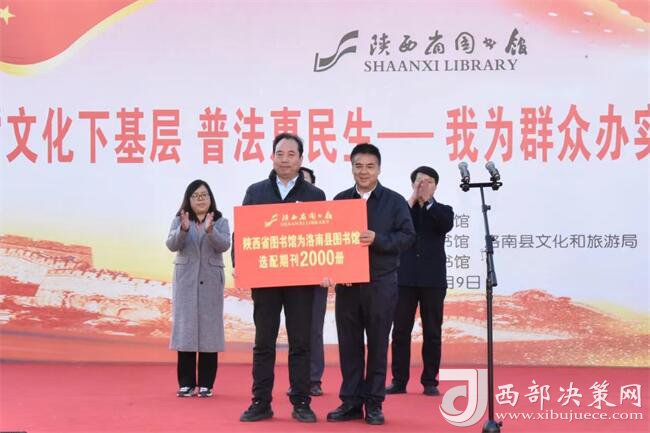 西部決策網(wǎng)訊 12月9日,由陜西省圖書館主辦,商洛市圖書館、洛南縣文化和旅游局、縣圖書館承辦的“文化下基層 普法惠民生——我為群眾辦實事”主題活動在洛南縣舉行。陜西省圖書館黨委書記、館長周云岳,中共洛南縣委常委、宣傳部長郭民成,陜西省律師協(xié)會民事專業(yè)委員會主任劉曉恩,商洛市圖書館館長彭萍莉,洛南縣文化和旅游局局長劉濤,縣司法局副局長楊娟,縣圖書館館長楊新鋒等有關(guān)領(lǐng)導(dǎo),陜西省圖書館第三黨支部黨員代表及社會各界等300余人參加。活動啟動儀式由劉濤主持。