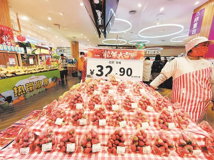 超市里的車?yán)遄雍图t顏草莓 攝影:楚天都市報極目新聞記者曹磊