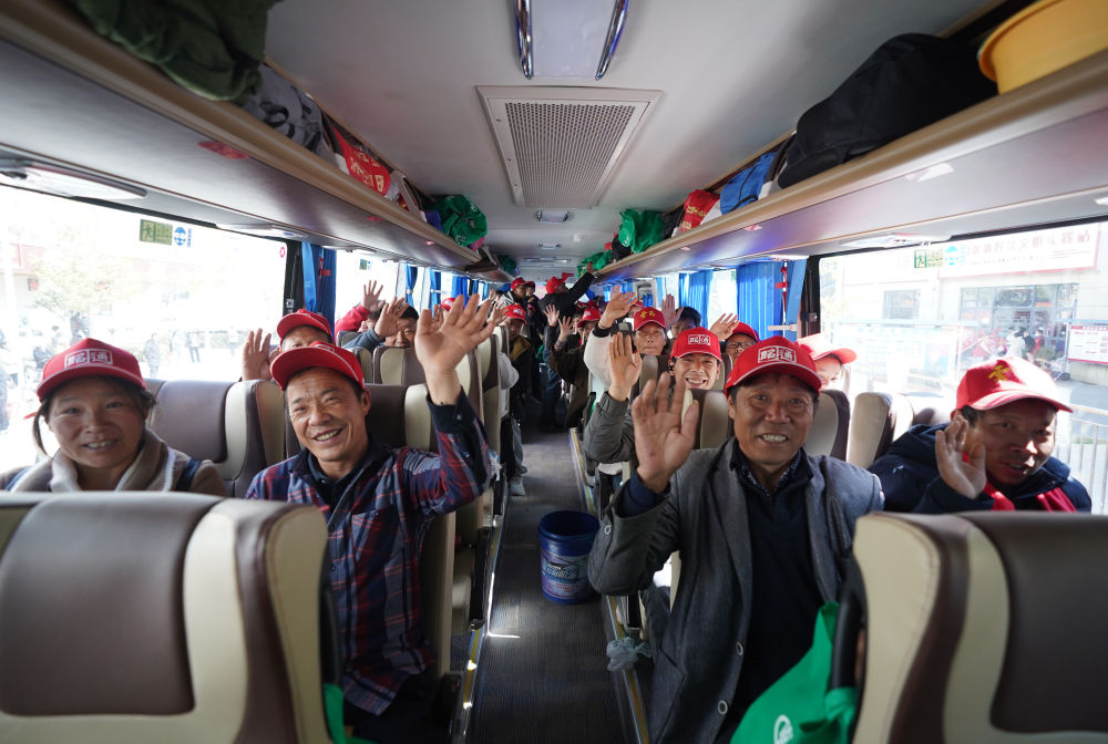 2月21日,在云南省昭通市的務(wù)工人員免費乘坐返崗直通大巴車前往福建、廣東、江蘇等地返崗就業(yè)。新華社發(fā)(梁志強攝)