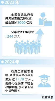 2023年,全國(guó)各級(jí)政府各類(lèi)資金直接支持就業(yè)、創(chuàng)業(yè)超過(guò)3000億元,并采取支持高校畢業(yè)生等青年就業(yè)、城鄉(xiāng)困難群眾就業(yè)等針對(duì)性措施,全年城鎮(zhèn)新增就業(yè)1244萬(wàn)人。