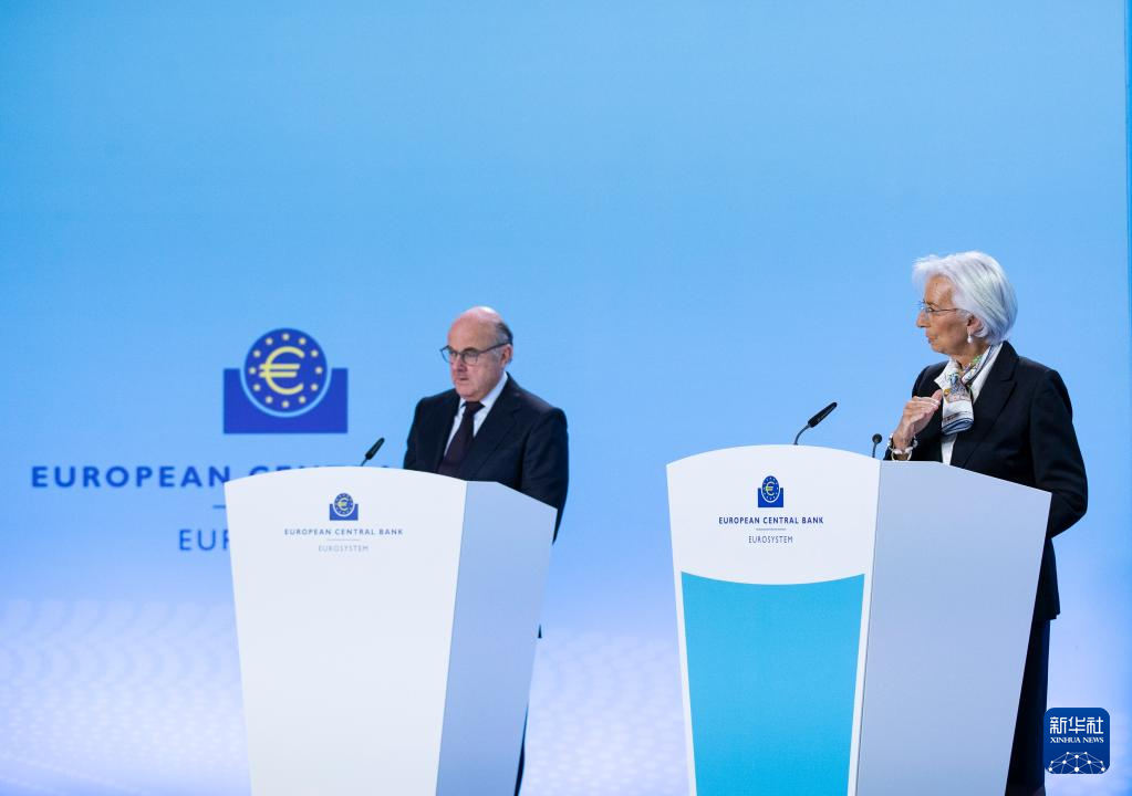 3月7日,歐洲中央銀行行長(zhǎng)拉加德(右)在德國(guó)法蘭克福歐洲中央銀行總部舉行的新聞發(fā)布會(huì)上講話。歐洲中央銀行7日召開貨幣政策會(huì)議,決定繼續(xù)維持三大關(guān)鍵利率不變。新華社記者 張帆 攝