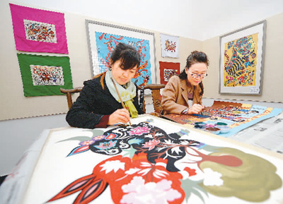 近年來,陜西延安安塞區(qū)依托全國民間藝術(shù)之鄉(xiāng)的優(yōu)勢(shì),圍繞腰鼓、民歌、剪紙、繪畫、曲藝五張文化名片,推進(jìn)文化+農(nóng)業(yè)+旅游的融合發(fā)展戰(zhàn)略,助力鄉(xiāng)村旅游發(fā)展。圖為10月20日,安塞區(qū)高橋鎮(zhèn)魏塔民俗文化村的藝人在繪制農(nóng)民畫。 新華社記者劉瀟攝……